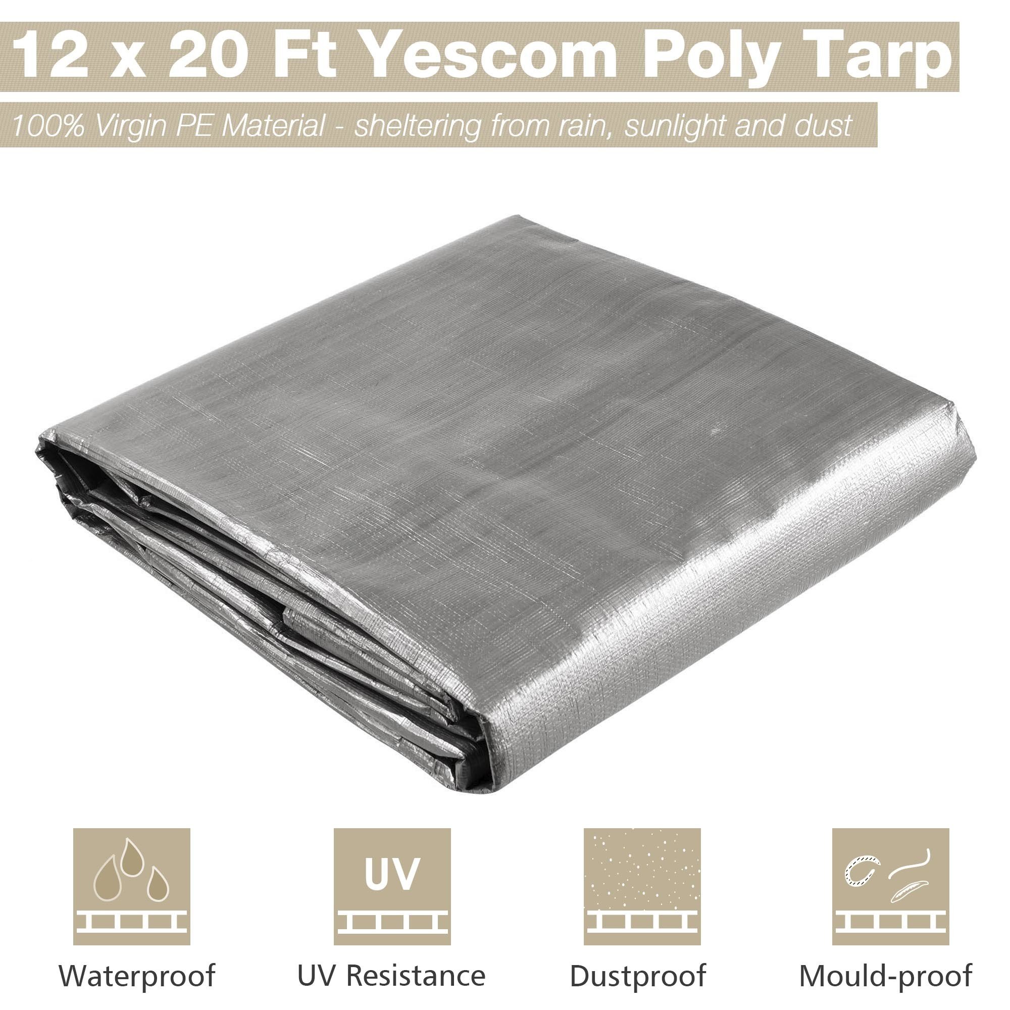 - Strong & Durable Shelter - 12 x 20 ft silver and black poly tarp forms a strong and durable shelter from sunlight; rain and dust; cooler underneath in the summer; Long lifetime up to 3 years; it features good ability of anti-aging for long-time use