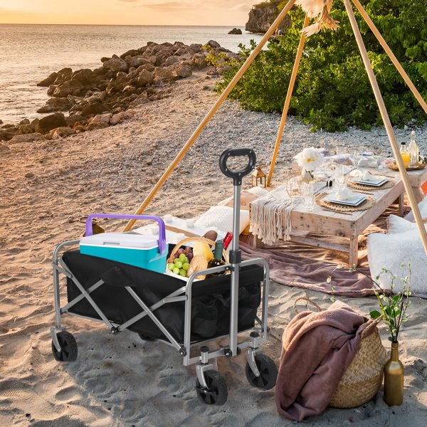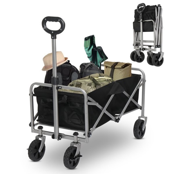Home > 74.5*45.5*84cm 100kg 600d Oxford Cloth Steel Frame Flat Folding Style Black Cloth Silver Frame Garden Folding Cart