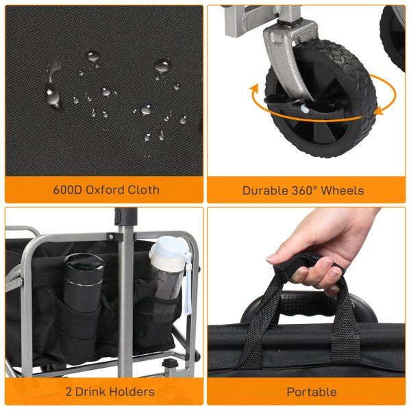 74.5*45.5*84cm 100kg 600d Oxford Cloth Steel Frame Flat Folding Style Black Cloth Silver Frame Garden Folding Cart