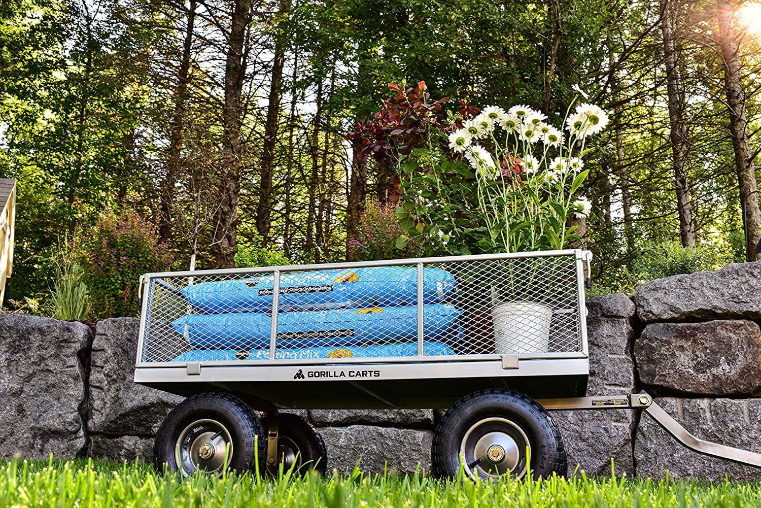 • Durable 49-inch x 24.5-inch steel mesh bed and 13-inch pneumatic tires