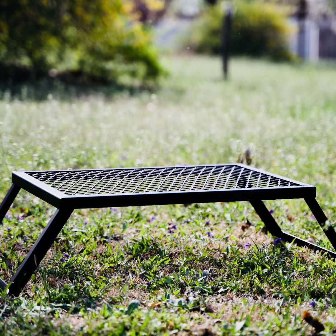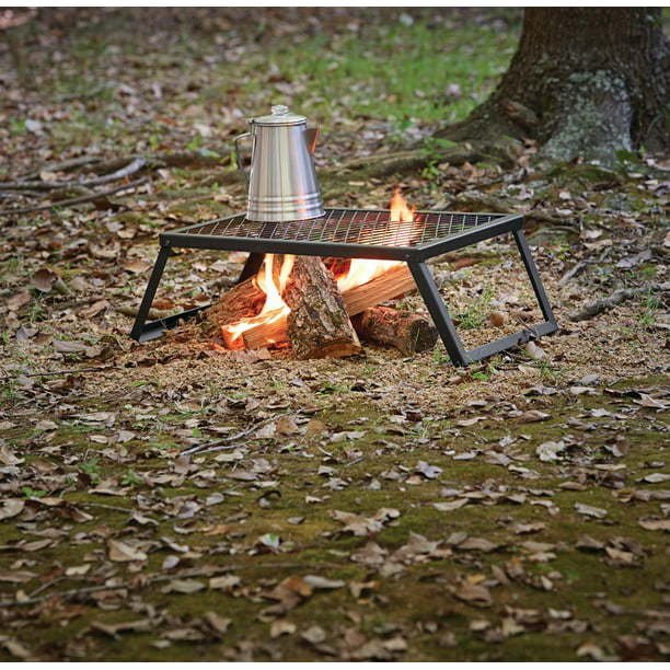 • When you're craving your favorite campfire foods, turn to the Outdoor Equipment Heavy-Duty Camp Grill. You've got an open flame when you're camping, so you have every reason to start grilling up those campfire classics. This rugged iron frame, metal surface grill is designed for cooking over open fires and is expandable so it can cook for just you or for the whole family. It's even built to fold up for ease of storing away and transporting, so you can take with you everywhere you go. Whether you're in the mood for roasting some hot dogs with the kids in the backyard or your whipping up some juicy steaks on your annual camping trip, the Outdoor Equipment Heavy-Duty Camp Grill is a must-have for making all your favorite flame-cooked foods.