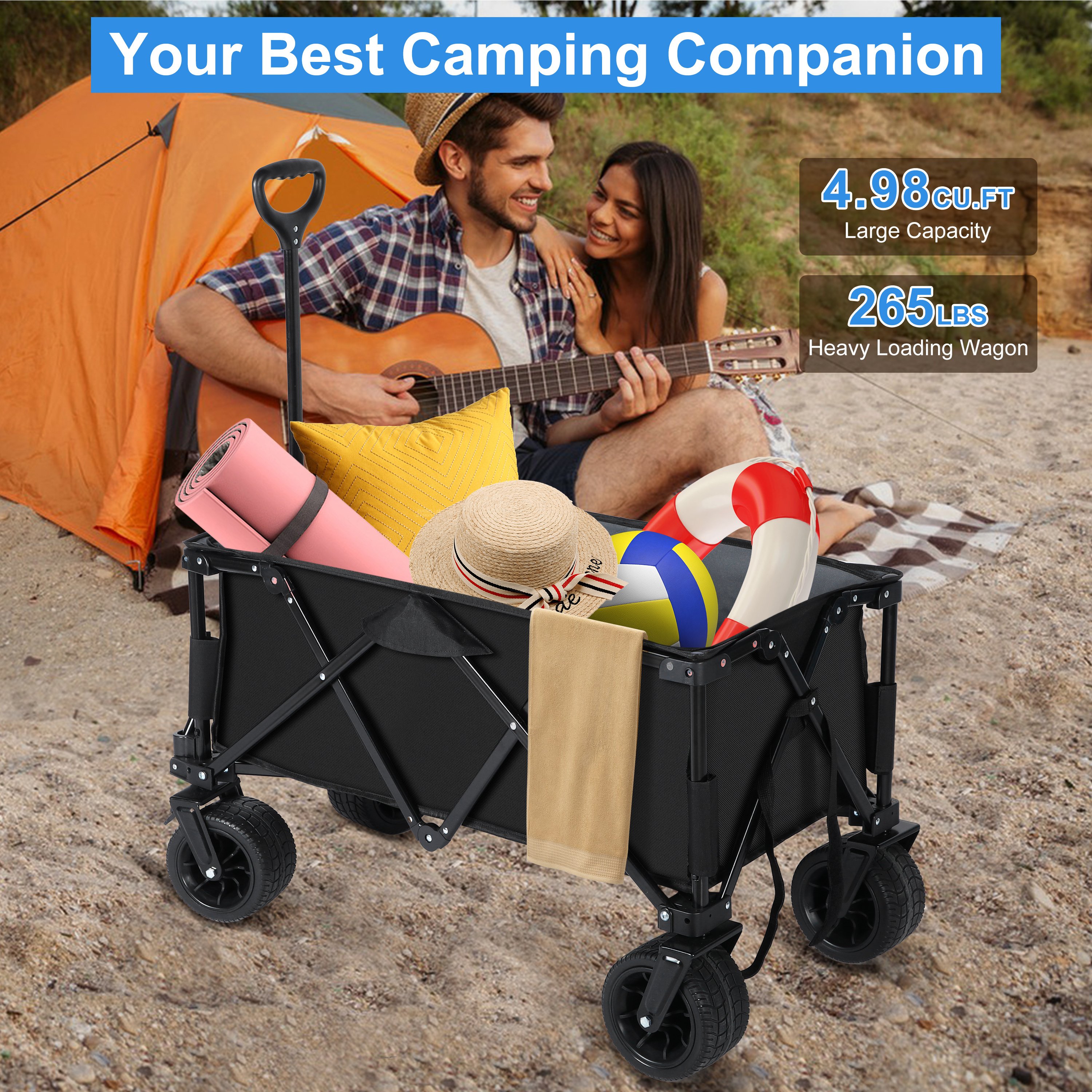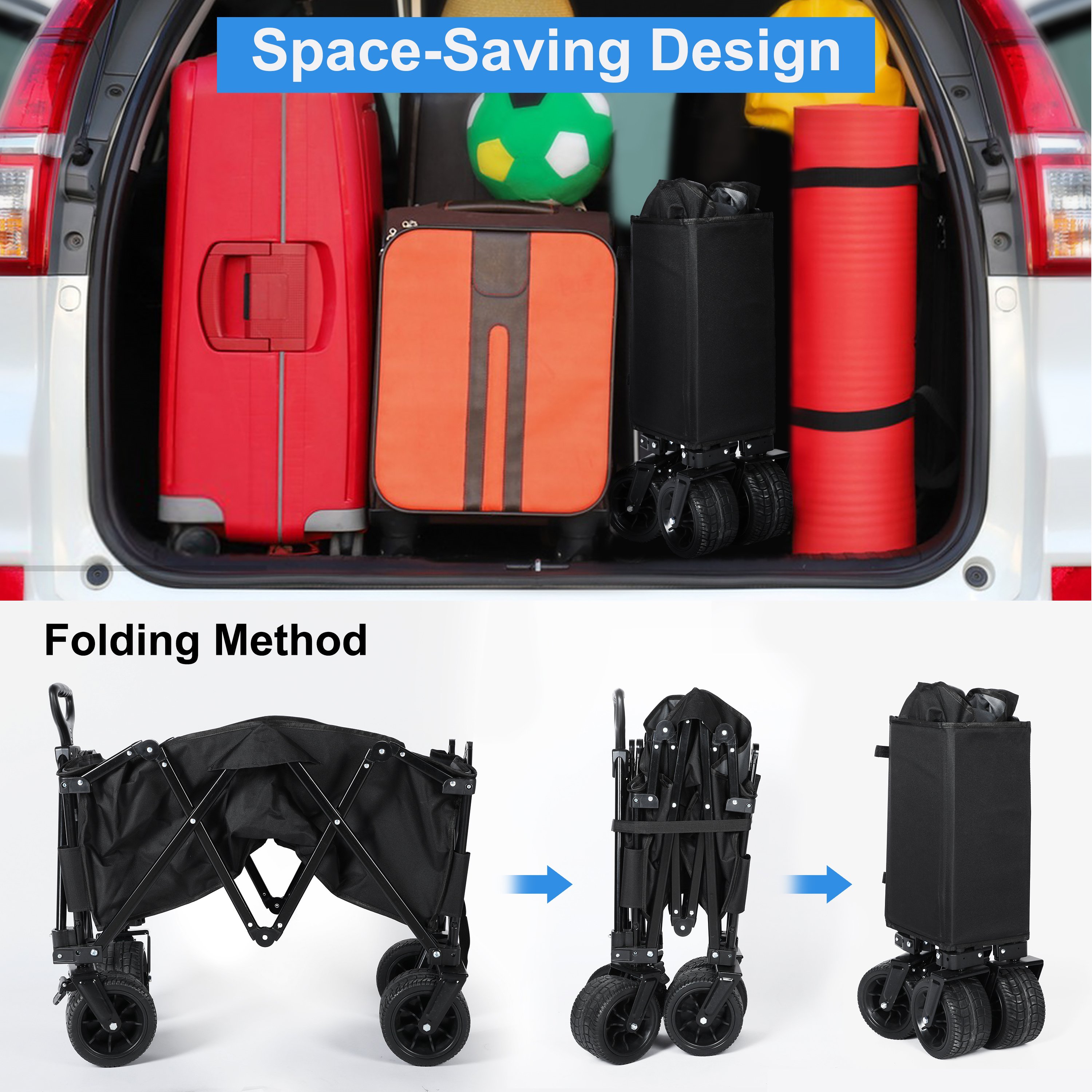 Home > Wagons Cart Heavy-Duty Folding PRO, 265 lbs Collapsible Carts with Wheels, Large Capacity, Outdoor Camping Garden Carts Beach Cart with Universal Whee